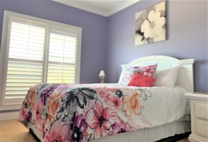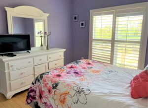 Purple Bedroom-Top Floor, Across from Master BDR -Queen Mattress-Facing Road- BTHR Adjacent